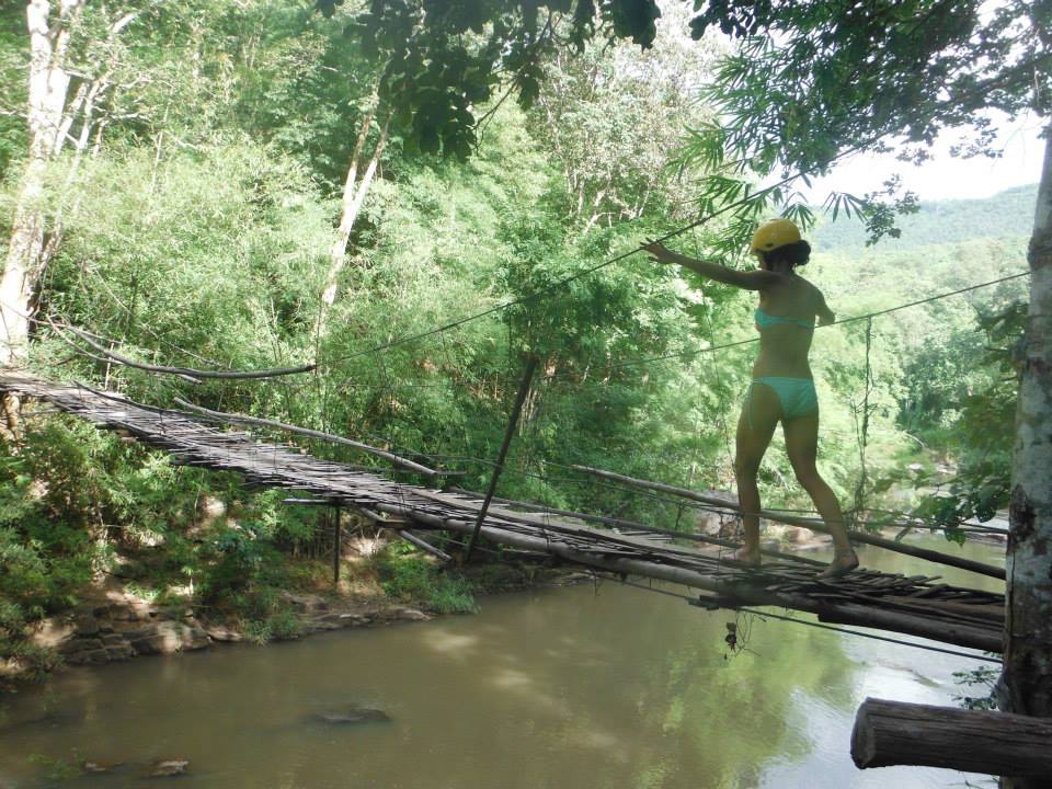 - Crossing a bamboo bridge