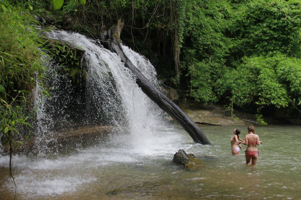 - Visiting a waterfall in the jungle