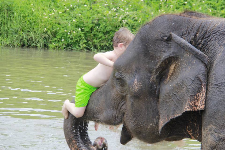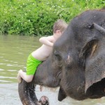 - Climbing up an elephant’s trunk!
