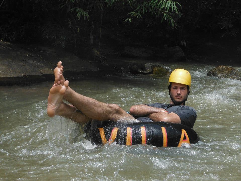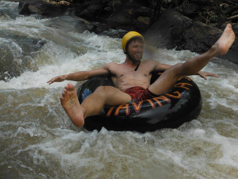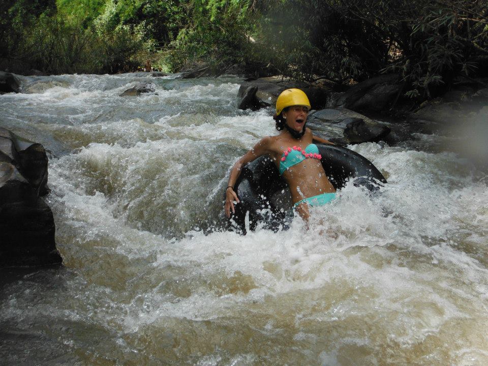 - Tubing down the river rapids