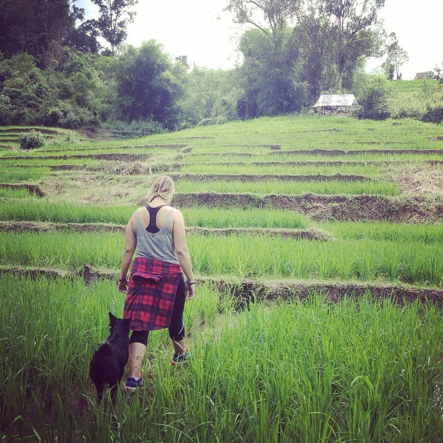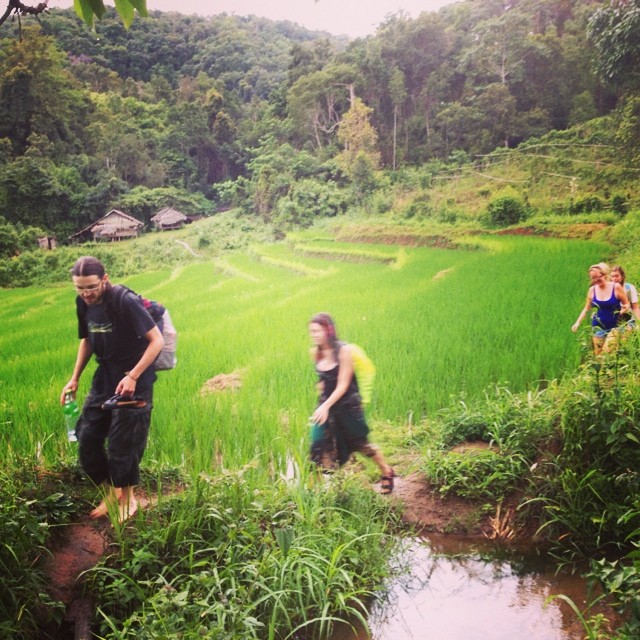 - Hiking in green rice fields