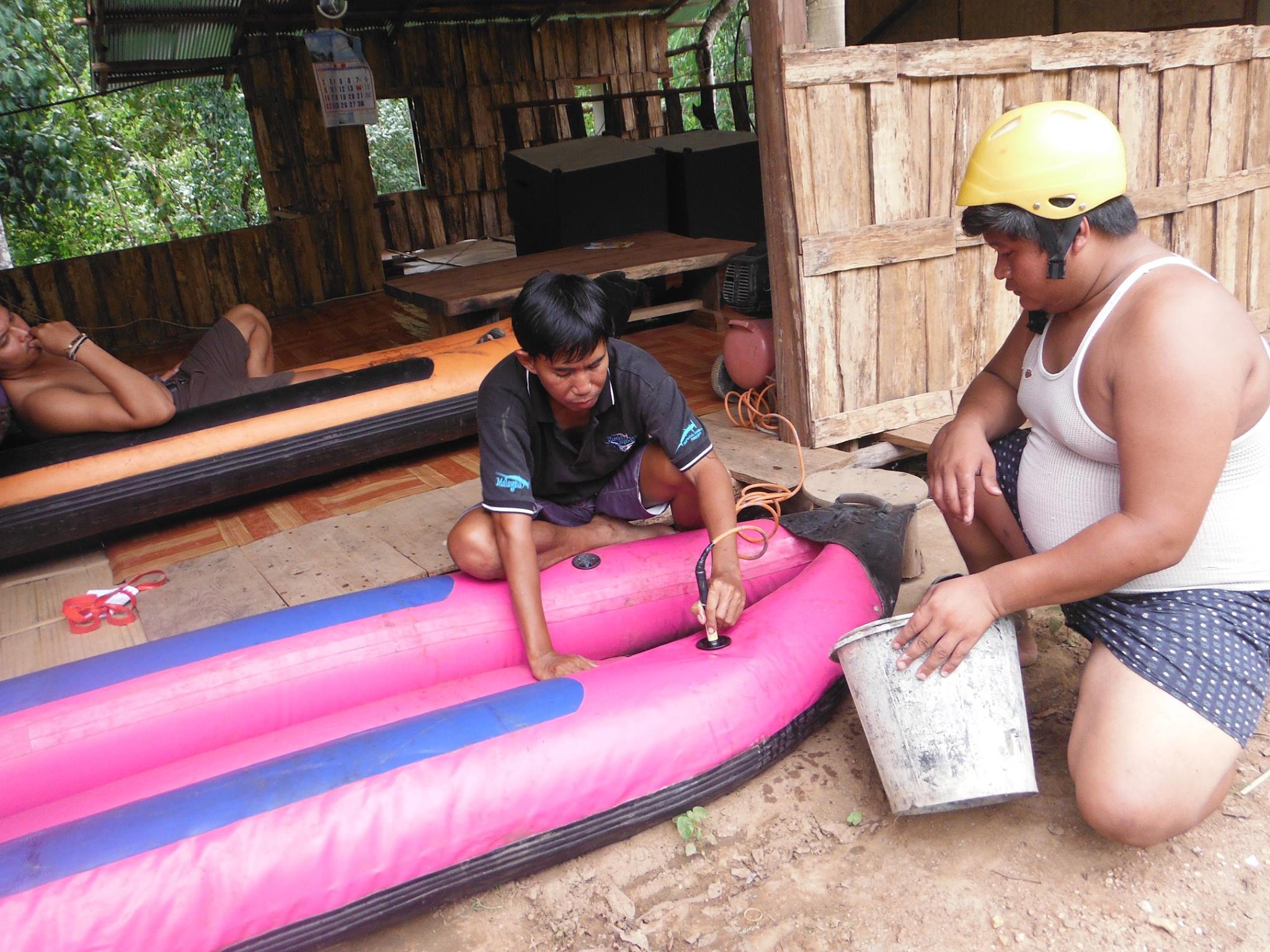 We got new inflatable canoes and canoeing equipment. Once everything was inflated, assembled and double checked, it was time to go to the river and give the new canoes a good test drive.